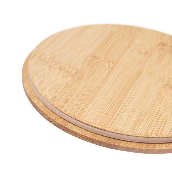 viečko z bambusového dreva, ktorého silikónové tesnenie zaručuje, že sa obsah