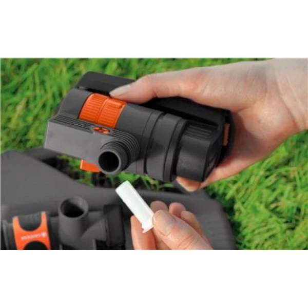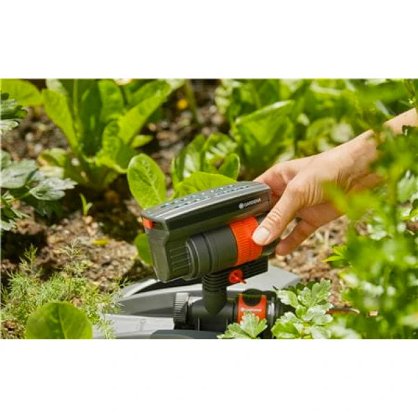 Zavlažovač je vybavený guľatou základňou, ktorá mu umožňuje stáť stabilne na zemi. Preto je veľmi vhodné umiestniť zavlažovač do stredu zeleninového záhonka, aby polieval rastliny okolo seba. Zavlažovač Aquazoom compact pokryje veľkorysú plochu od 9 do 216 m². Posuvník nastavenia umožňuje flexibilne určiť dosah (3-18 metrov) aj šírku postreku (3-12 metrov). Vďaka použitiu vysoko kvalitných materiálov pri výrobe sa môžete tešiť na 5-ročnú záruku a pečať Made in Germany; a tiež na to, že váš zavlažovač GARDENA nemôže poškodiť ani mráz ani UV žiarenie.