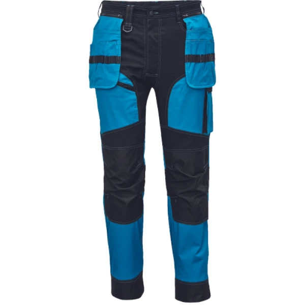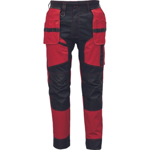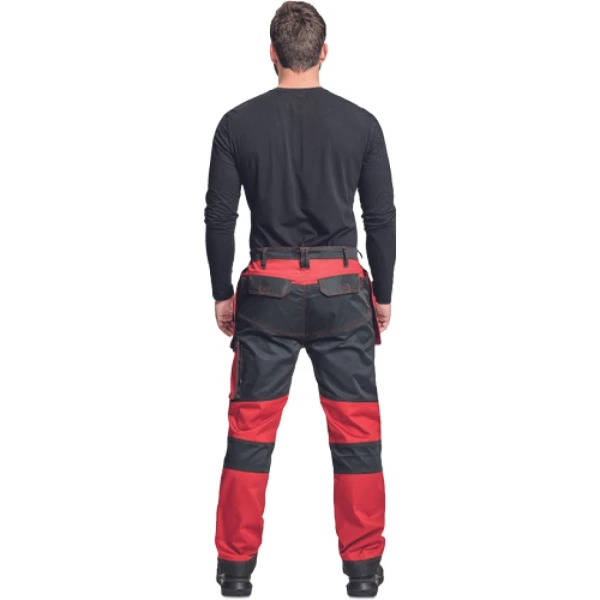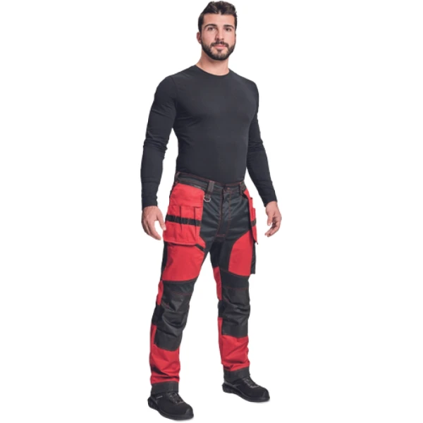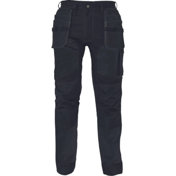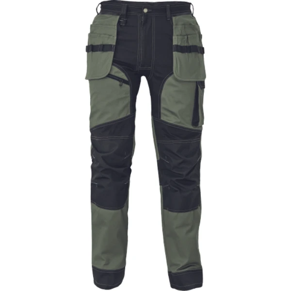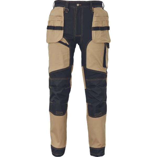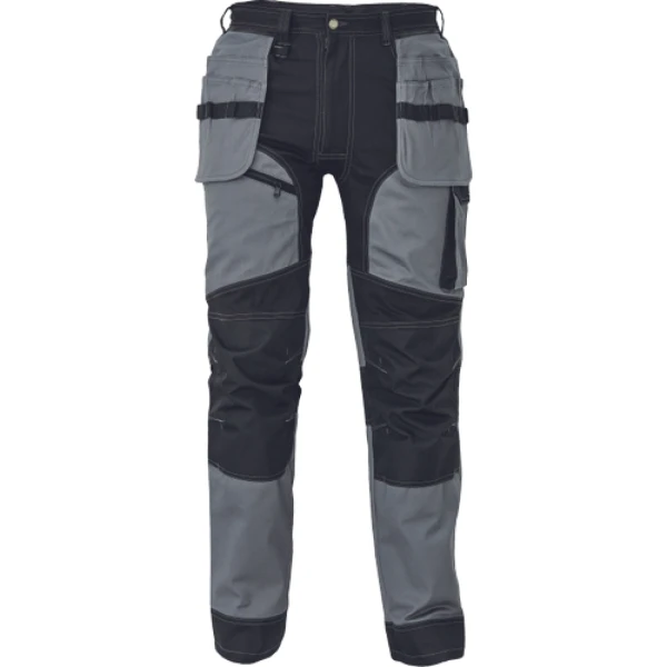 pánske pracovné nohavice z elastického materiálu; 2 postrannými vreckami a 2 vložiteľnými multifunkčnými vreckami na náradie; "D" krúžok; 1 bočné vrecko na nohavici s príklopkou; 1 vrecko na nohavici na zips; 2 nakladané zadné vrecká s príklopkou; zesílnená oblasť kolien s možnosťou vkladania kolenných výstuh; záložka na nohaviciach umožňujúca predĺženie dĺžky až o 5 cm; zesilnená zadná strana spodku nohavíc; dekoratívne prešitie; 265 g/m2