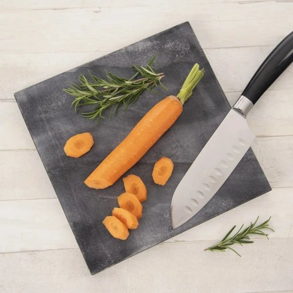 Hranatá mramorová podložka v tmavej farbe ponúka všestranné využitie. Ozdobí