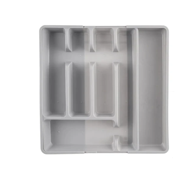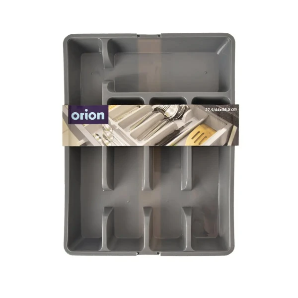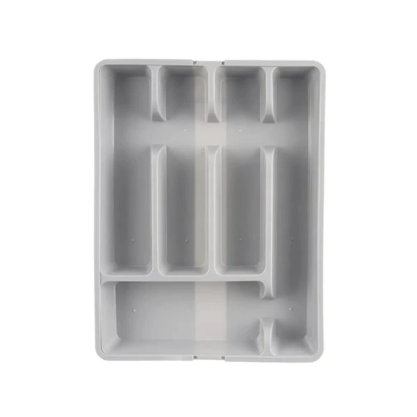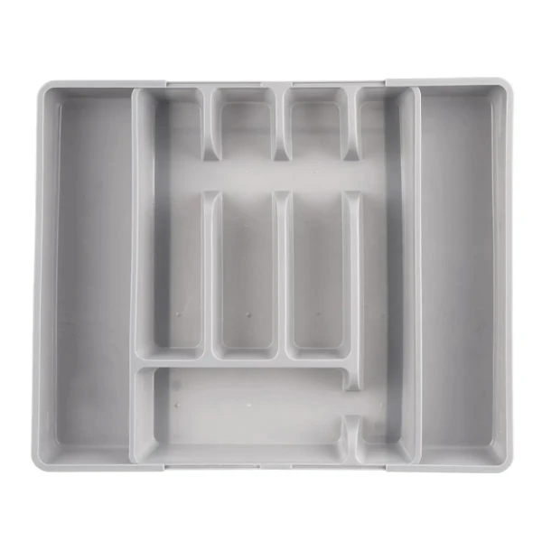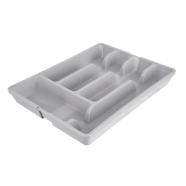 Je rozdelený na 5 sekcií, kam je možné uložiť základné druhy príborov. Nože, vidličky a lyžice, lyžičky alebo nože. Navyše má po stranách výsuvné diely, ktoré ho zväčšia o ďalšie dve sekcie až na šírku 44 cm.