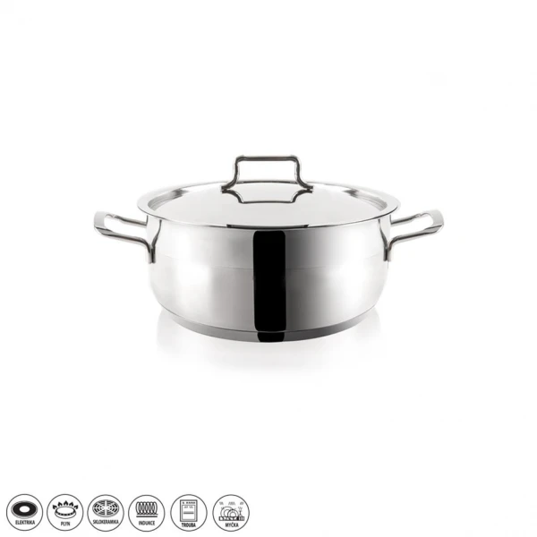 Vhodné aj do umývačky riadu.- varenie bez tuku - bez straty vitamínov a minerálov obsiahnutých v potravinách- riad predstavuje dokonale hygienické prostredie pre varenie a uchovávanie potravín- zachovanie prirodzenej chuti a hmotnosti upravovaných potravín- vonkajší a vnútorný povrch nádob je vysoko leštený, takže zabraňuje pred usadzovaním nečistôt a zaručuje dokonalú údržbu- sendvičové dno s termoakumulačnými vlastnosťami zaručuje rýchle a ekonomické varenie s výraznou úsporou energie.