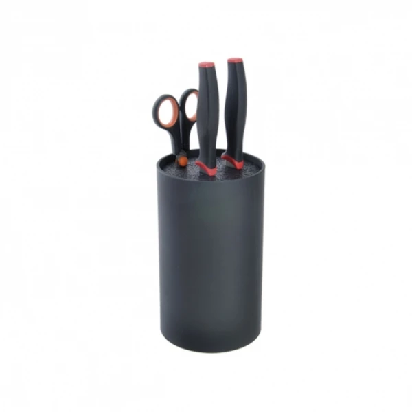 Praktickým pomocníkom, ako mať ostré kuchynské nože, nožnice, pinzety a pod. vždy po ruke, je stojan na nože. V tomto jednoduchom plastovom stojane s vložkou so syntetickými štetinami možno uložiť nože a ďalšie kuchynské náčinie. Naviac sa zložito nemusíte triafať do jednotlivých otvorov, ale stačí zľahka zatlačiť nôž do štetín a je to.
