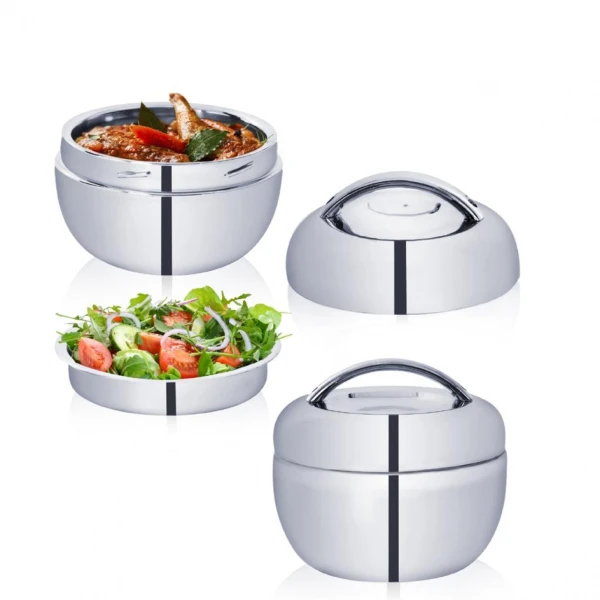 Nerezová termomisa vďaka termoizolačnej penovej vrstve medzi stenami udrží konštantnú teplotu pokrmu..